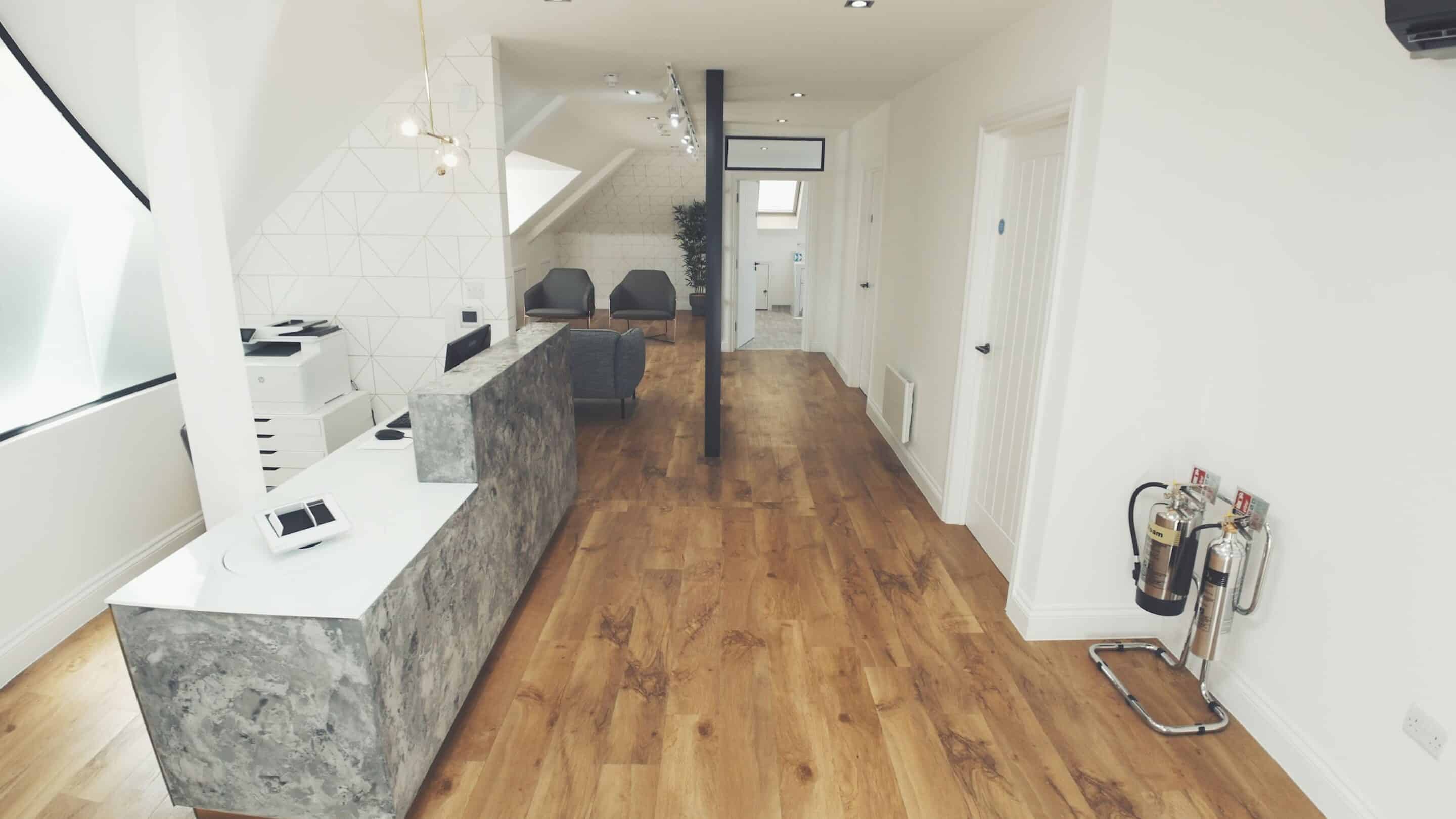 Turning the designs into reality is made enjoyable when the planning and design work is done well. Before the work started, we set up a schedule of weekly site meetings for the duration of the whole project to ensure Dr Mehta & Dr Zai were well informed of progress and key decisions were made in good time. The discovery of a beam in a wall that we were removing, was in the place of the proposed reception desk came as a surprise, but we quickly overcame this by involving our structural engineer. The polished concrete reception desk is the showpiece of the practice! By having a single point of contact throughout the whole process, Dr Mehta & Dr Zai were able to stay focused on their day jobs, practicing as associates, without the distraction, stress and pressure of project managing different teams and contractors. One contact, one team, one invoice!