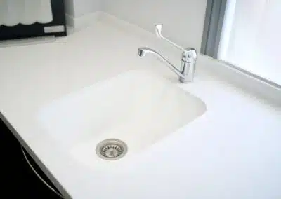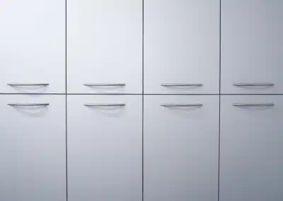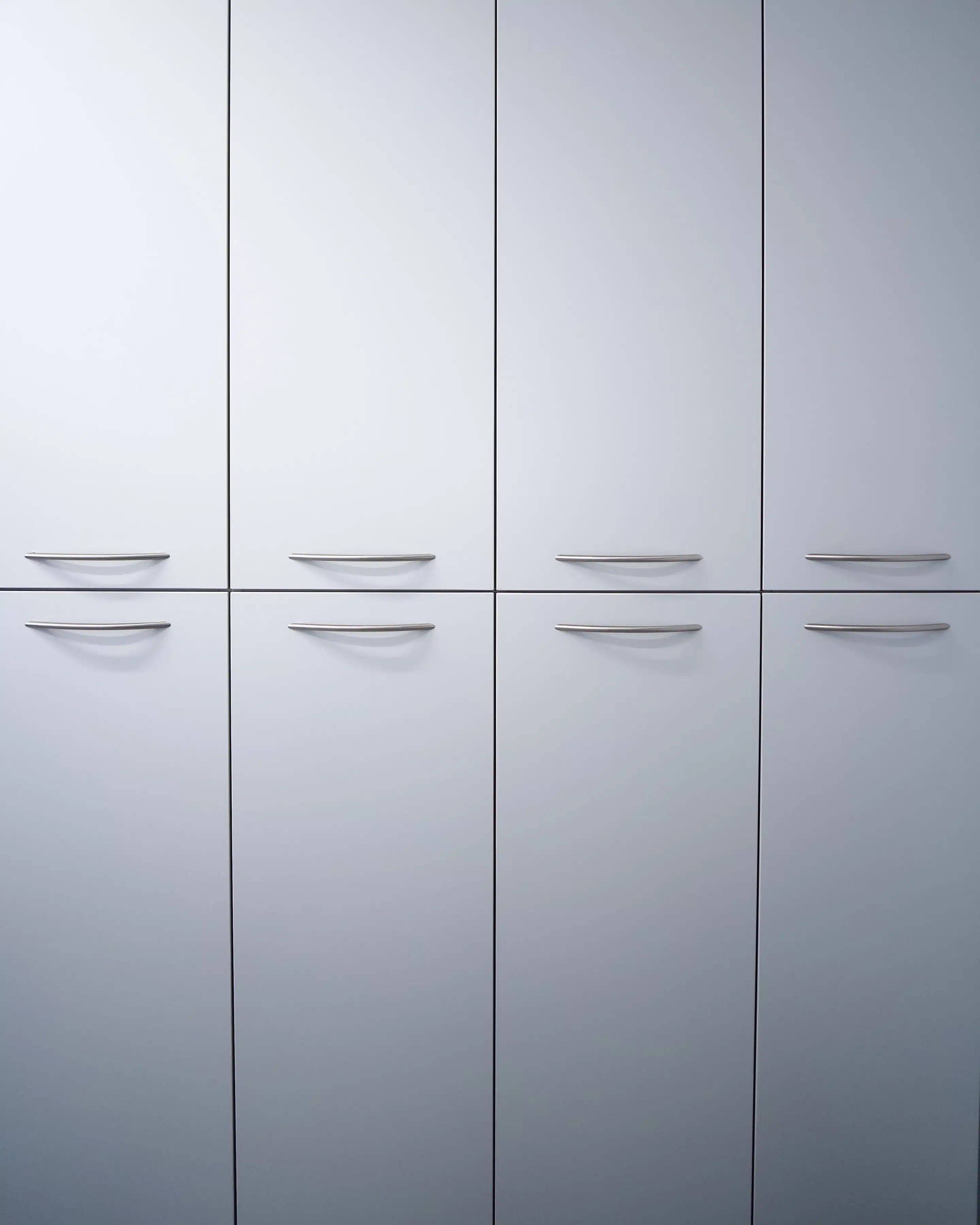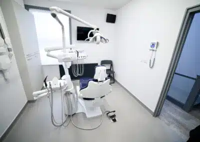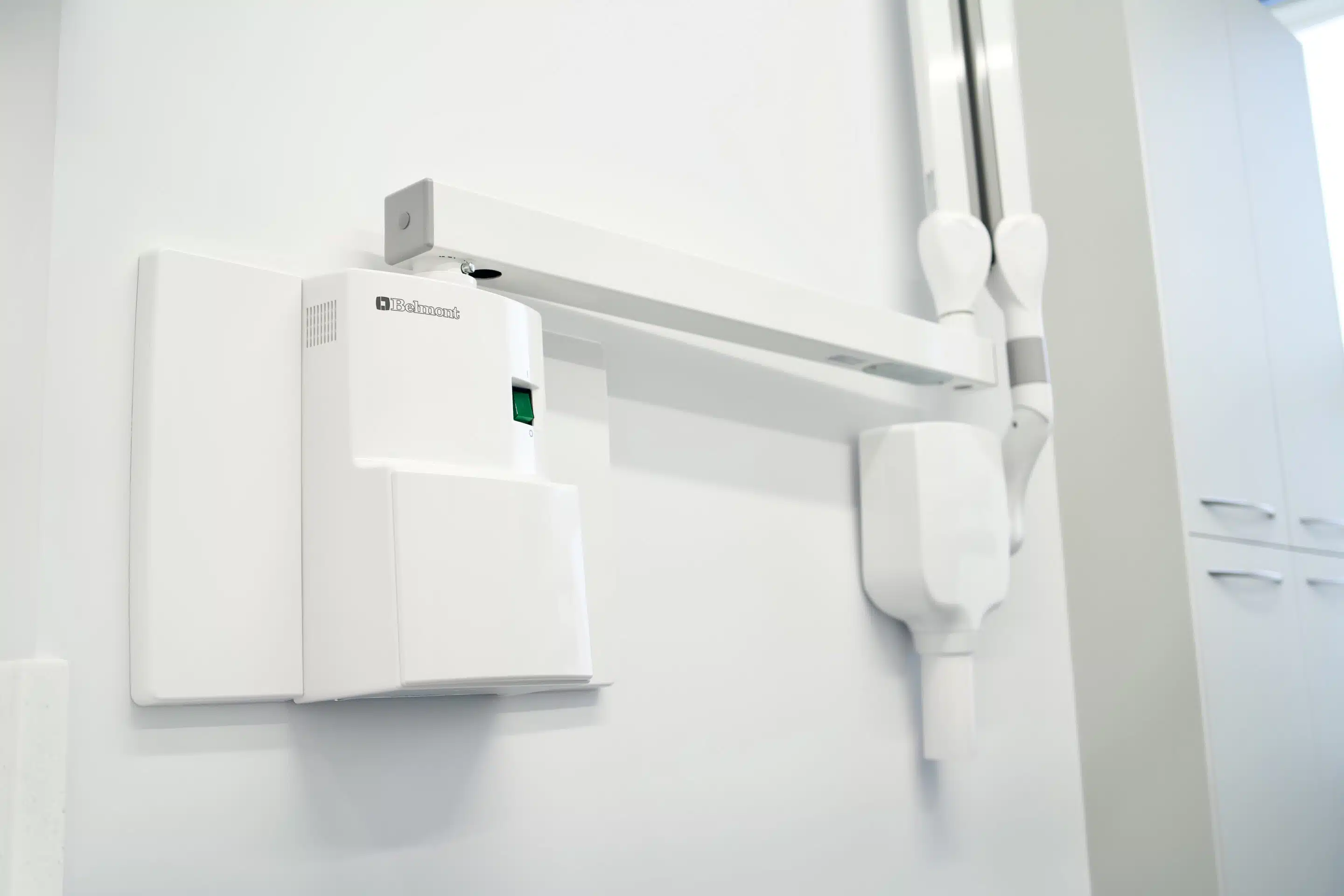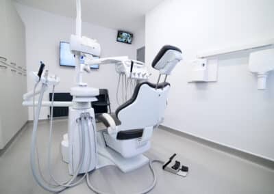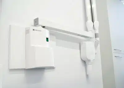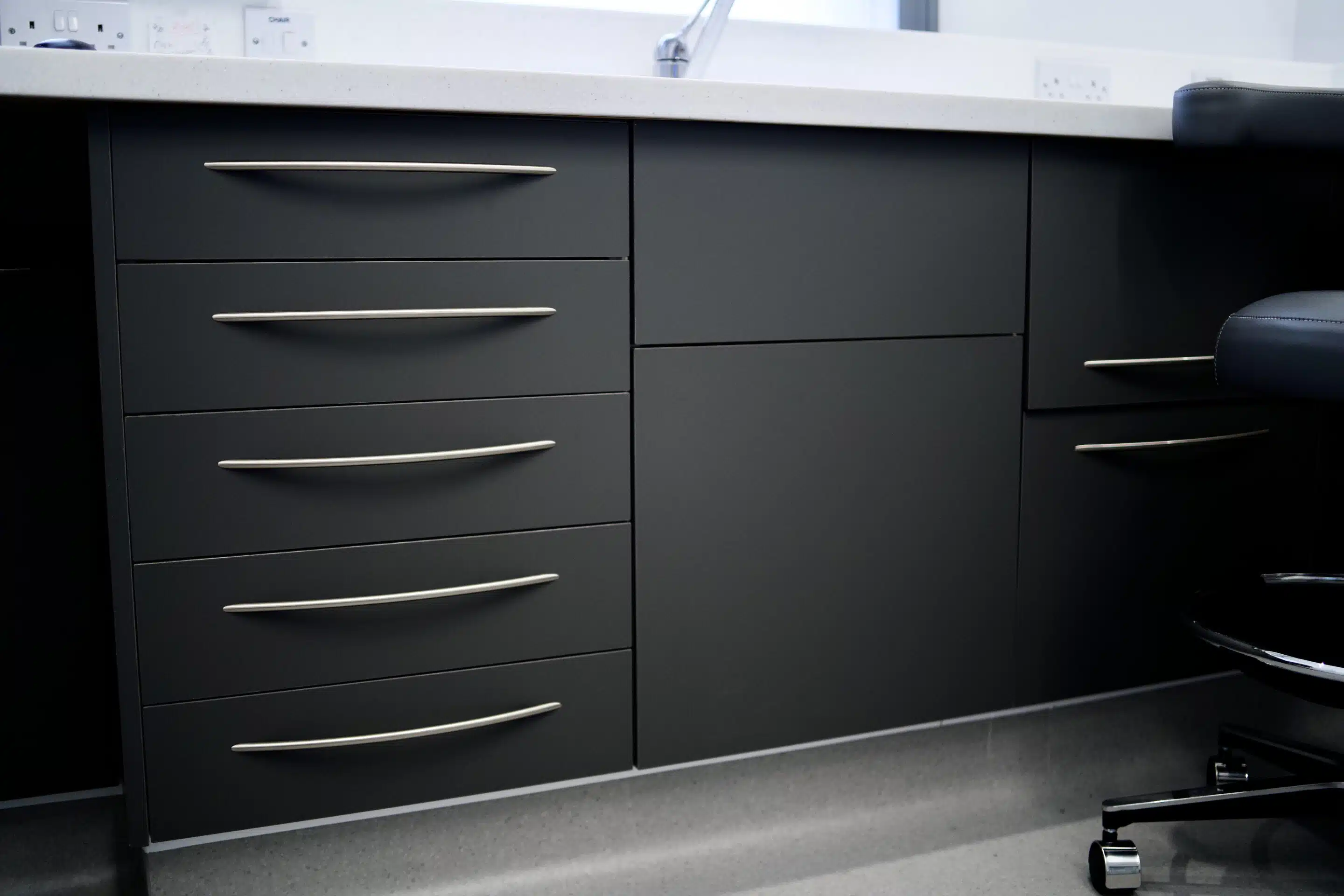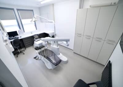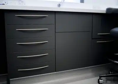 Solid surface cabinetry and Corian sinks were installed in both surgeries. They were equipped with KaVo 1058 treament units in ‘Midnight Blue’ and ‘Graphite’ Relaxline upholstery as well as Belmont 097W Belray II wall-mounted x-rays.